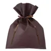 不織布ギフトバッグLサイズ 不織布ポーチサテンリボン付き マチ無し 100枚入り LC962 ブラウン