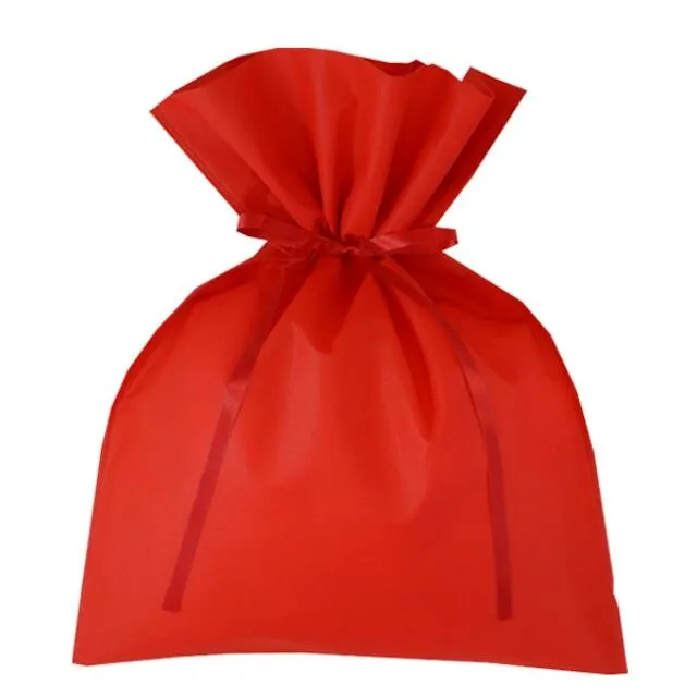 不織布ギフトバッグLサイズ 不織布ポーチサテンリボン付き マチ無し 100枚入り LC962 レッド