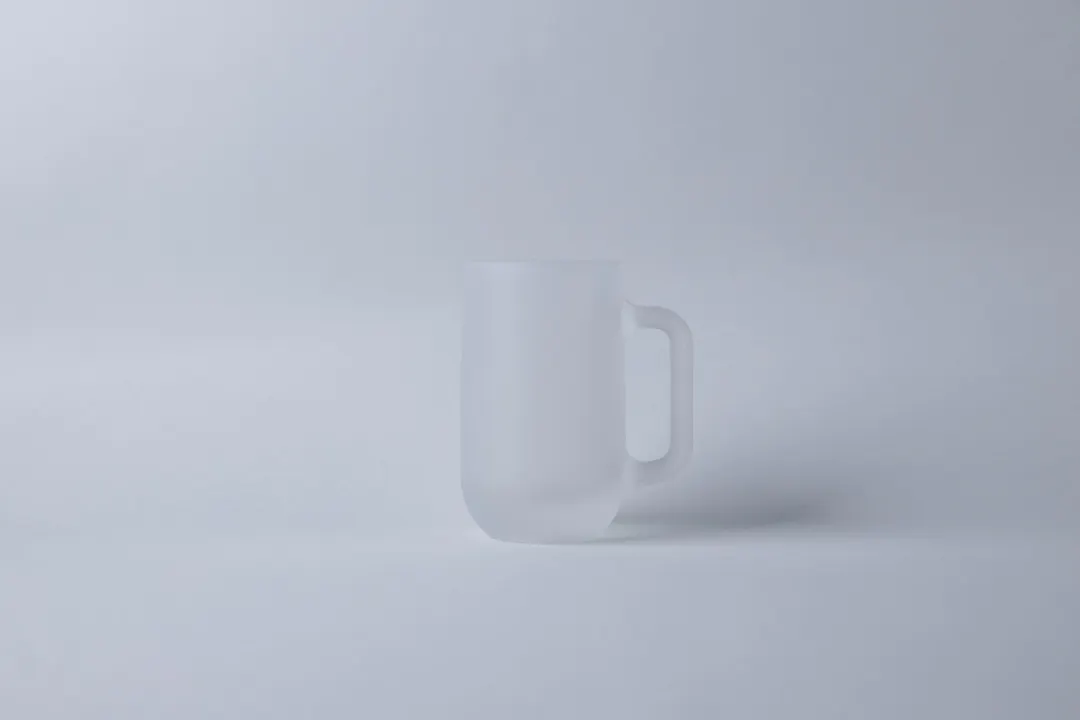フロストはふんわりとした雰囲気が優しく、表面のごく微細な凹凸のおかげで泡立ちが豊かになります。350mlビール缶が注ぎ切れるサイズに計算して作っています。さらに高さを抑え、太めの設計で、食器棚に収まりやすく、洗いやすい。
