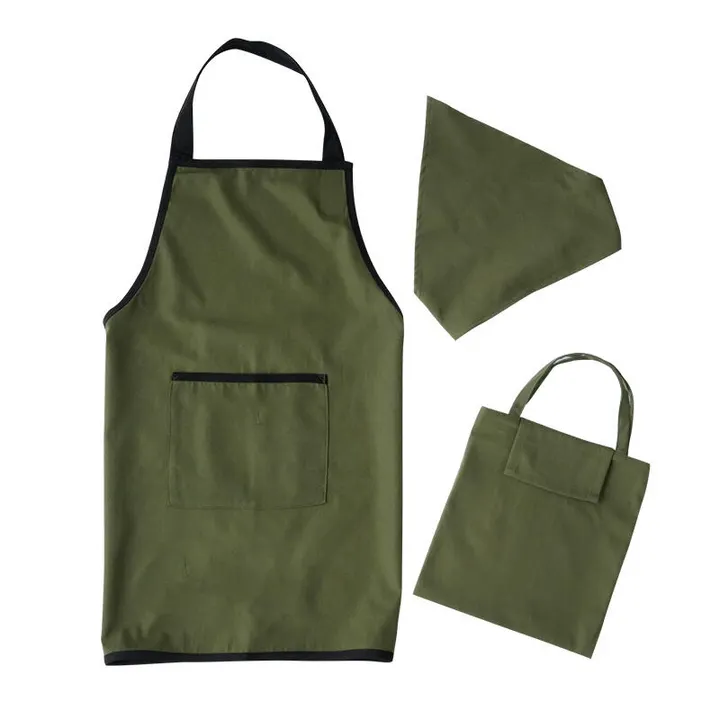子供用エプロン3点セット L グリーンブラック