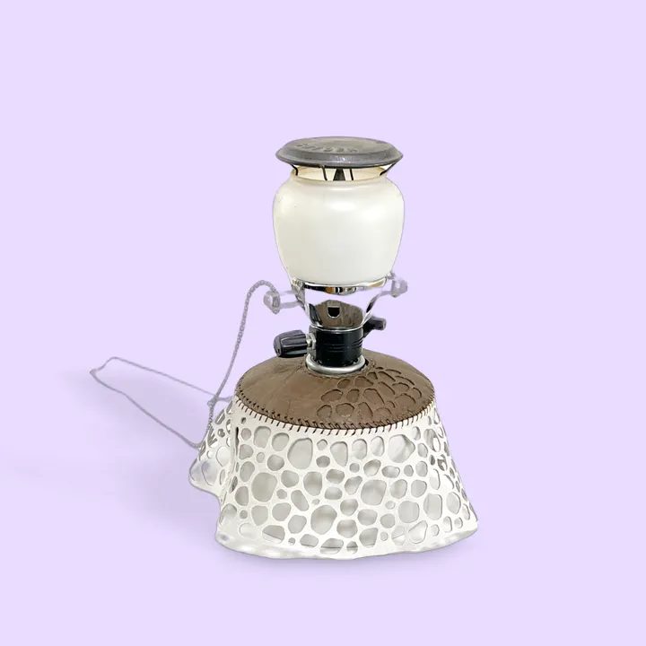 きのこの女王と言われるキヌガサタケをモチーフにした、1点もののOD缶カバーです。 素材は本革を使用、網状レースの部分は丁寧に切り抜きキヌガサタケの魅力を最大限に引き出しています。 全て手作業でお作りしております。 キャンプやアウトドアシーンでエッジのきいたアイテムとしても大活躍。 ご自身でお使いいただくのは勿論、きのこ好きの方へのプレゼントなどにも最適です。 【素材】 本革 【color】 ブラウン×オフホワイト 【size】 直径11.3㎝/高さ約7.8㎝ 230缶〜250缶に対応 *ご使用されるOD缶によっては多少の余裕がある場合もございます。 ランタンをご使用の際のカバーとしてオススメです。