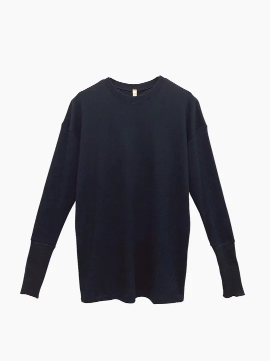 華奢見せできるドロップショルダーが大人のカジュアルスタイルを演出するトップス。 シンプルなデザインながらも、リブ素材の袖口がアクセントをプラス。 程よく体にフィットするストレートシルエットで、質の良いオーガニックコットンの柔らかさを感じていただけます。 家でのリラックスタイムにも、お出かけのインナーとしてカーディガンやジャケットと合わせて、様々なコーディネートを楽しめます。 カラーは、様々なアイテムと相性のいい深みのある「ブラック」。