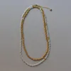 曲線がある軸のまわりを一定の速度で回転しながら 移動するときにできる 美しい3次元曲線 螺旋 無限に移動しながらも曲線を描き続ける 立体を描きながら回転する様は とても優雅で踊っているようです --- CACICOのシグネチャーであるスパイラル形状(螺旋形状)を シンプルなデザインに落とし込みました ベーシックなデザインのためカジュアルスタイルからドレスまで 幅広くお使いいただけます 首飾りの長さは3サイズ(45cm、70cm、120cm) カラーはgoldとsilverの展開です 一番短いサイズはTシャツの襟ぐりよりやや長め 真ん中のサイズは胸のあたり 一番長いサイズはおへそより下のスーパーロング 二重巻きにしても使用でき コーディネートの幅が広がります material ガラスビーズ、真鍮、マグネット、テグス *ゴールドビーズは本金メッキ加工を施したものを使用しております *留め金具はマグネットタイプを使用しております size L=約1200�o+アジャスター50mm weight 約18.0g *CACICOの商品は全て1点1点制作しているため、個体差があり、商品写真と差がある場合がございます。ご了承の上、ご購入ください。 *金属アレルギーの方はご使用をお控えください