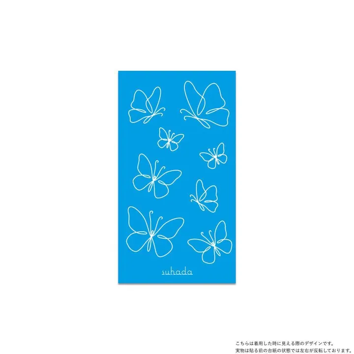 シンプルな線画の蝶々のデザイン。 他のホワイトデザインや線の太さが同じブラックのアイテムと合わせても可愛いです。 こちらはホワイトタトゥーです。