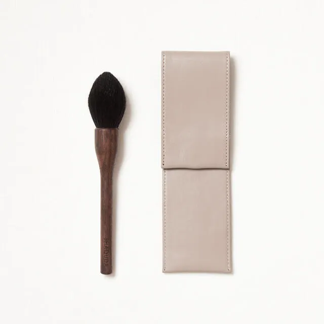 オールマイティに使えるフェイスブラッシュとレザーブラッシュケースSを桐箱に詰めてお届けします。 桐箱は湿気を防ぎ、自宅でのブラッシュ収納にもご使用できます。 内容 801 クラシカルフェイスブラッシュ 筆の原点に回帰した穂先のフォルムが秀逸なクラシカルフェイスブラッシュ。パウダーを美しくのせるフィニッシング用や、ナチュラルに仕上げるファンデーション用、さらにチーク用やシェイディング用にも使える、オールマイティな1本です。 用途:フィニッシング/ファンデーション・チーク・シェイディング CA1 レザーブラッシュケース S 使いこむほどになじむ牛革なめしのブラッシュケース。 内側も穂先を美しくスムーズに収納できるピッグスキンを合わせています。 1本から3本用のコンパクトなサイズです。 使い勝手とシンプルな形状、革の存在感が「大切なブラッシュを心地よくもつよろこび」をみたします。