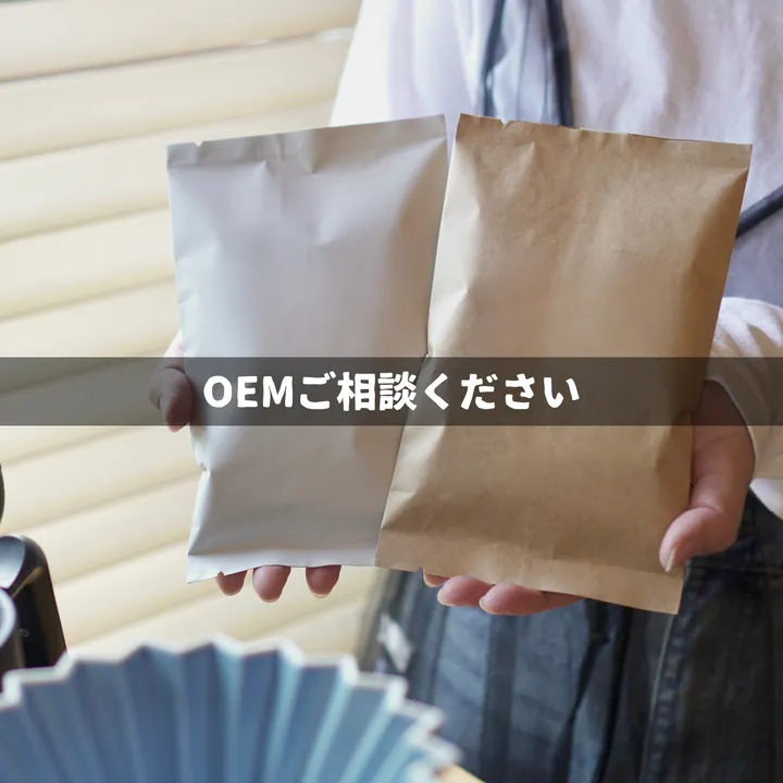 コーヒー豆やドリップバッグなどのOEM商品を製作。 ロゴや文字入れ、オリジナルブレンドなどもご相談ください。 小ロットでも対応可能。