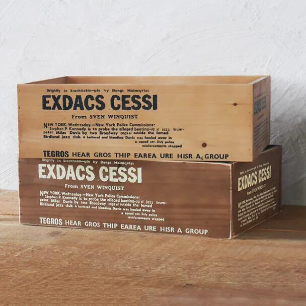 北海道 旭川市の自社工場で製作しています まるで屋根裏部屋から出てきたような使い込んだ雰囲気の木箱。 子供部屋でおもちゃ箱にしたり小物類を無造作に放り込んでもOK リビングの片隅に置いておくだけでお部屋のインテリア小物としても◎ 新聞や雑誌類の整頓にもちょうど良いサイズです。 ■商品サイズ 約 横幅410×奥行283×高さ130mm (天然の木材を使用しているため多少の誤差が出る場合があります) ■材質 天然のパイン材(北海道産)を使用しているため、節や木目、色合いなどが1つ1つ違います。 底板は合板をはめ込み。軽量で扱いやすい。 木目、色合いなどが1つ1つ違います。木目の凹みや小さなキズ、などがある場合がありますが、アンティークの風合いを出すため、ご使用に問題の無い範囲で良品とさせて頂いております。 ■仕様 柄のプリントは写真で見えている2面に入っています。置く向きによって無地としても使えます。 手作業でアンティーク加工をしているのでひとつひとつ仕上がりが違います。