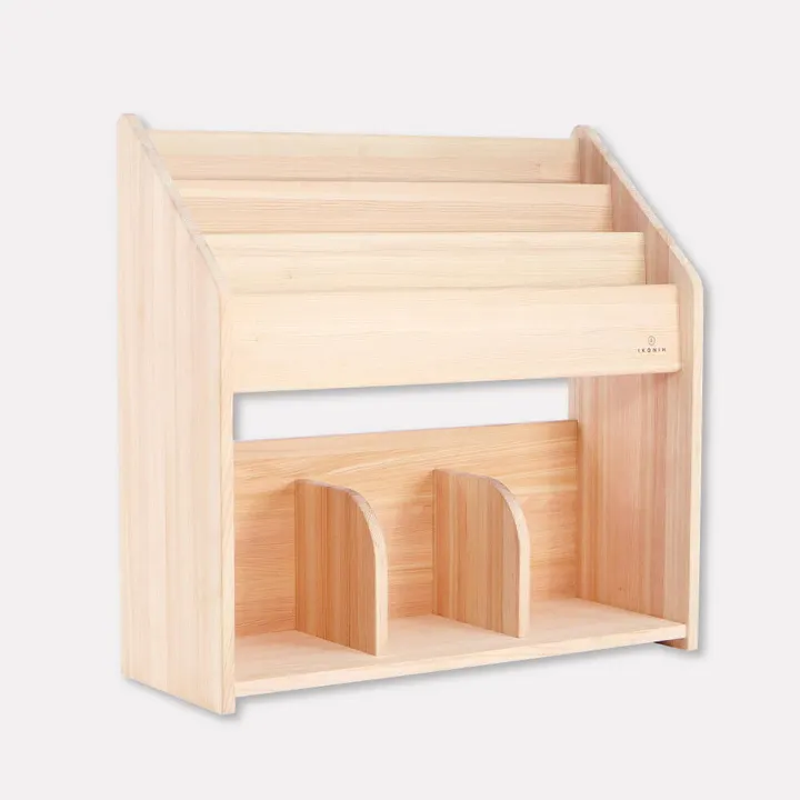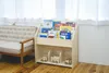 絵本の表紙が見える本棚。大きめの絵本や図鑑もラクラク収納できます。 大容量の収納が可能な本棚です。また、下段の収納部分は高さにゆとりがあり、重たい図鑑やおもちゃ、小物などを収納するのにぴったり。 本棚には段差があり、絵本の表紙がはっきりと見えるので、楽しく絵本を選ぶことができます。 セット内容:本体/1台 付属品:傷防止クッション/4個