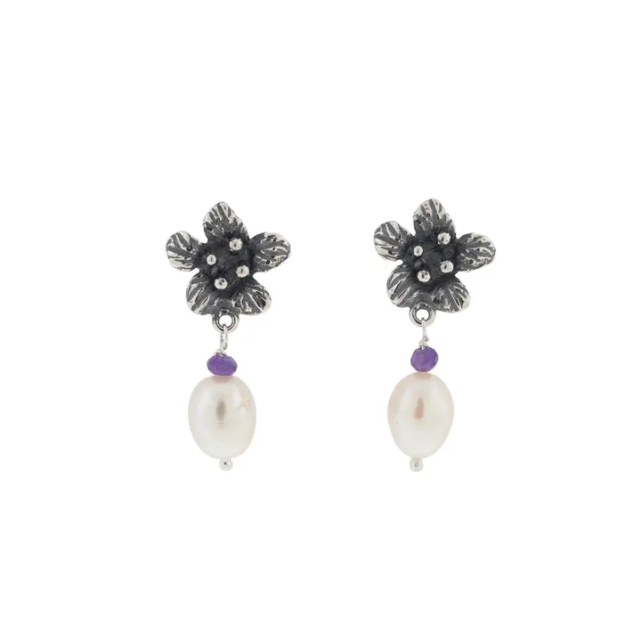 Aretes Flor Del Bosque Colgantes|蘭の花のピアス(シルバー・パール・天然石)
