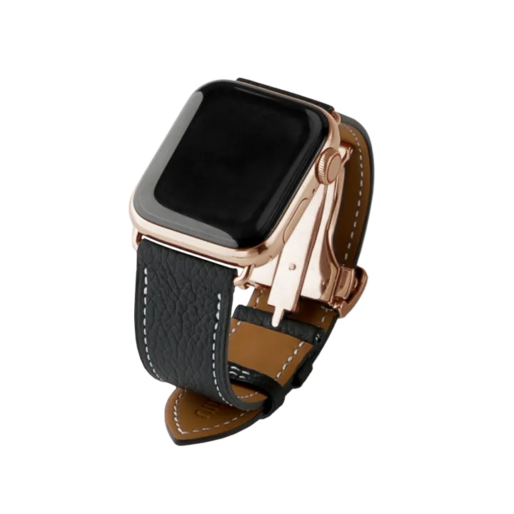 Apple Watchレザーバンド (38/40/41mm対応) ブラック×金具ピンクゴールド