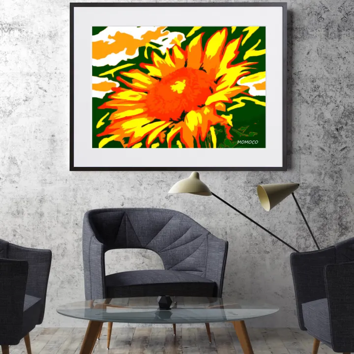 アーティスト -PROFILE- MOMOCO(モモコ) 「色」をこよなく愛する画家、ライブペインター。 躍動感あるアートにも関わらず、服を一切汚さず短時間で音楽と同時に描き上げる。そのパフォーマンスと巨大アートは観る人を魅了する。 前職は某有名ファッションブランドにてデザイナーとして活躍。その経験の中で養われた「色とデザイン」の絶妙なバランスを活かしつつ、トレンドを取り入れ進化し続けるアートを目指す!国内外問わず、精力的にアートと向き合い発信を続けている。 【作品について】 ビタミンカラーが目を引く!ポップなデザイン 眺めるだけで日々の活力になるような、そんな元気をもらえる素敵な作品 子供部屋や、キッズルームにもおすすめです 作品名:himawari Ⅳ 手法:デジタル、イラスト ペーパー:高品質半光沢紙 マットカラー:白 マット*:DXホワイト芯 100%バージンパルプ/PH7・中性紙(2mm厚) ※全てのアートにマットがつきます フレームカラー:黒、白、無垢(3種類から選択) ※マット付のため通常とはフレームサイズが異なる規格となります。 【マット*とは?】 アートポスターの周りに挟んだ厚紙の事。 マットを使わない時に比べ余白により広がりが生まれ、作品の新たな一面を引き出せ作品の見栄えがグッと良くなります。また、額縁のガラス面と作品が直接触れたままにしておくと、くっついて作品を傷つけることがあります。マットを使用することでガラスと作品の間に空間ができ、作品を保護することができます。ブランドコンセプトにより全てのアートにマットがつきます。 ー ファッションのようにアートを ー 私達が掲げるコンセプトです! 毎日着替えるファッションの様に、アートも気軽に飾り変えて欲しい... 一旦飾り終えたアートにも光を当ててほしい... ポスター単体、またはリピートで中身だけのポスターを購入された方に"専用のハンガー"をセットでお届け。 「今までに無い!新しいアートの飾り方を提案」 飾る事がなくなった前のアートをハンガーにかけて洋服と一緒にかけてもらう。 その日の気分や、モチベーションですぐに取り換えられる様に。 もちろん、魅せる収納としても今までにないおすすめの飾り方です。
