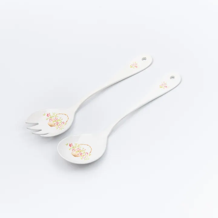 サラダスプーン&フォーク[ホーロー/花柄/カントリー雑貨/ローズバスケット]日本製