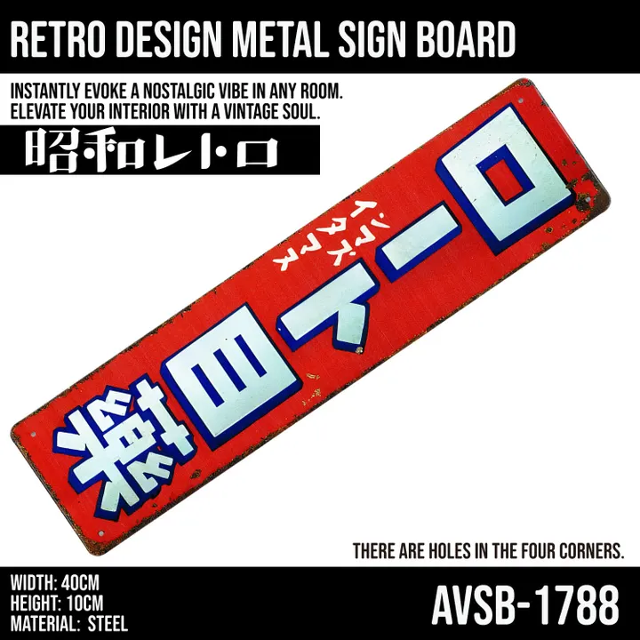 人気の昭和レトロザインのノスタルジックなビンテージ風サインボードです。 こちらは40X10CMサイズです。 雑貨屋さんはもちろん駄菓子屋さんにも人気です。又、インバウンドのお土産にも最適です。 お部屋・ガレージ・お店・カフェ・店舗のイメージ作りやイメージアップ、ディスプレイ、お部屋のインテリア、壁飾り、催し物、など幅広く活躍します! また掛けやすいように4隅に穴が開いているので取り付けも簡単です。  スチールの看板は日本各地で街頭広告、店内用看板として商用看板として用いられていました。 昭和レトロのデザインなのでお部屋やガレージを昭和スタイルに装飾可能です。 DIY、エイジング塗装、アンティーク塗装、男前系 などのリメイク家具やリメイク雑貨とも相性抜群です。 錆びているように見えますが実際には錆びておりませんのでお部屋を汚すことなく飾っていただけます。