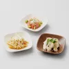 ”三つ星”の柄をちりばめた丸みのある”なで角”の器は、デザインを主張せず毎日の暮らしの中で飽きることなく使い続けるのに最適です。 深さも盛り面もある形なので、餃子のタレ皿や刺身の醤油皿として使え、キンピラや煮豆などの副菜も少しずつ山型に盛り付ければいつにも増して食欲をそそられます。 ハーフマットシリーズは、光沢とマットの中間となるハーフマットな質感が特長の釉薬を使っています。 星かげ(ほしかげ) Teshioの豆皿第3弾は、豆皿を使い慣れていない方でも使い始めるのにちょうどよい、かしこまらず手軽に使える器です。 夜空に瞬く星のあかりを意味する”星影”のように、数多ある豆皿の中からこのお皿にめぐり合った方の食卓を、いつもより少しだけ明るく彩るうつわになってくれたらとの想いを込めて作りました。 丸みのある”なで角”のフォルムはデザインを主張せず、料理をやさしく包み込みます。 ハーフマットシリーズは、光沢とマットの中間となるハーフマットな質感が特長の釉薬です。淡いニュアンスのホワイトとピンクや、憂いのある深い色合いのネイビーとブラウンがあり、ホワイト×ネイビーや同系色のピンク×ブラウンで組み合わせて揃えていくのがオススメです。