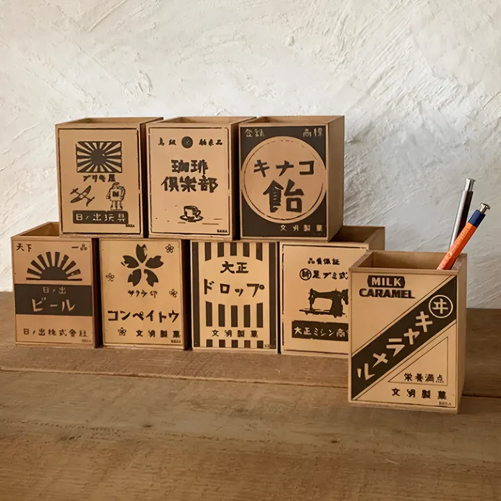 【木製 ペン立て】昭和レトロ柄 全12種類 コンペイトウ