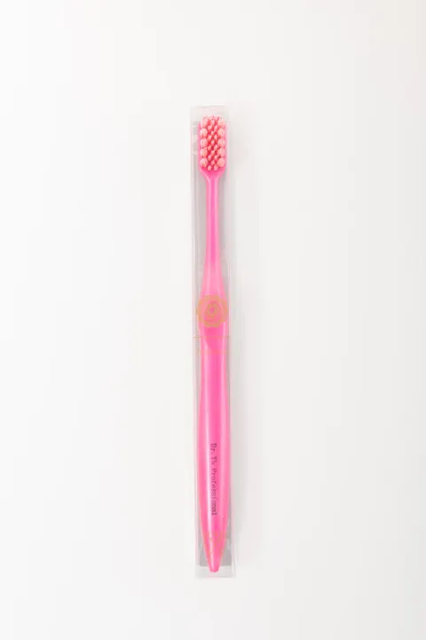 最大の特徴は歯ブラシの毛がハの字に広がりにくいデザインを採用!! 両サイドのタフト(毛の植毛されている穴)を通常より大きめのサイズにすることで毛の広がりを最小限にすることができます。 ⻭科医院に定期的に通われている方の口腔ケアを追求し、 極上の磨き心地 を実現した⻭ブラシ 質の良い毛でデリケートな口腔内を優しくケア!効率よく口腔ケアを行える愛用者に優しい歯ブラシです!! ①最高級のトルネード毛で 細部への到達性を極限まで高める。 柔らかさ・しなりと強さを併せ持った毛先、柔らかいのに毛先⻑持ち ②植毛の先端を細くするテーパード加工により、 極上の磨き心地と⻭周組織の隅々までの毛先到達を実現。 ③植毛穴のサイズをコントロールし、植毛密度を向上させる独自の植毛デザインにより どのような角度で⻭ブラシを当てても全体的に毛先が到達。 ④適度な圧がかかりやすいハンドルデザインで ⻭肉マッサージから⻭周ポケット内の汚れの除去、⻭面全体の擦掃までをカバー。隅々までしっかり磨けるプロ仕様の⻭ブラシです!