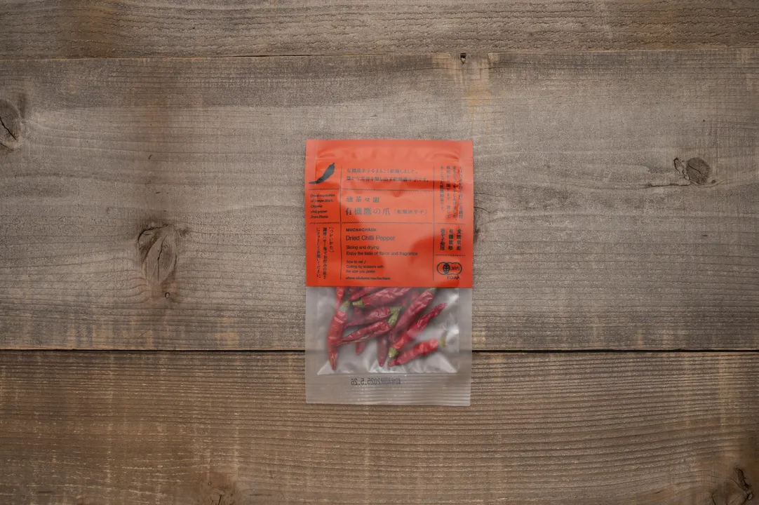 有機唐辛子をまるごと乾燥しました。豊かな芳香を醸し出す乾燥唐辛子です。 軽く水洗いした後、調理ハサミ等でお好みの長さにカットしてお使いください。 にんにくと一緒にオリーブオイルで炒めて自家製のピリ辛オイルに。浅漬けや炒め物など、ちょっと辛味がほしいときにも便利です。