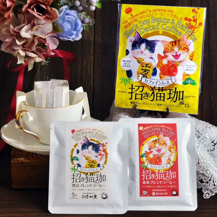 サンプル:猫珈 ミルクブリュー&招き猫珈 黒豆&赤米ブレンドコーヒー カフェインレス