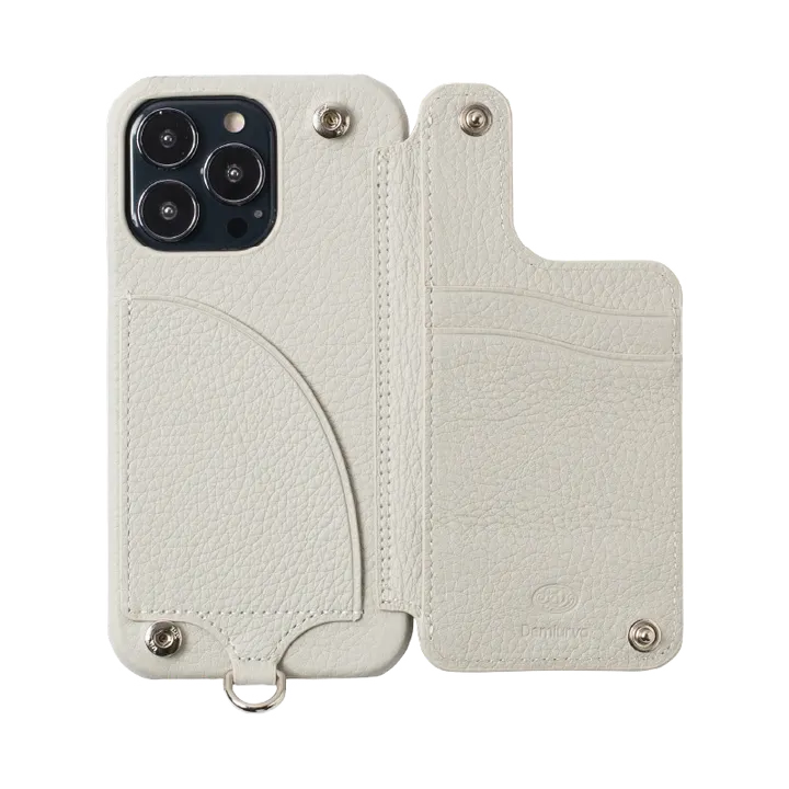 2023年9月より弊ブランドはDemiurvo(デミウルーボ)改めDEMIU(デミュウ)に改名いたします。 それに伴い、DEMIUの名を配したブランドネーム・ロゴが採用されます。 一部商品に関しては、Demiurvoとして引き続き販売いたしますが順次モデルチェンジ予定です。 何卒、ご理解のほど宜しくお願い致します。 カラー豊富なカード収納機能つきiPhoneケースPOCHE FLAT(ポシェフラット)。 選び抜かれた上質なフランス産牛革を使用したiPhoneケース。 本革を使用しているため、ひとつひとつとして同じ革がないところも魅力。 思わず目を惹かれるカラーと質感で存在感抜群のアイテムです。 右扉の内側に2段のカードスリットと隠しポケット、左側に収納ポケットを施しカードケースとしての機能を備えた便利なアイテム。 蓋をささえにして横置きできるのでYouTubeやテレビ会議にも便利。 ショルダーなどを付けられるリングが付いているので、別売りのショルダーストラップとのセットや色違いのストラップでコーディネイトするのもおすすめです。 ※iPhone12 miniおよび13miniの背面のカード入れに関してですが左側(ケース装着側)の仕切り部分と、右側の裏ポケットにはカードはお入れいただけません。右側のカード入れにはカード段が1つの仕様となります。ご注意ください。 ※ストラップは別売りです。 ー仕様ー・素材本体:牛革ケース部分:ポリカーボネート金具:ニッケル・重量約65g