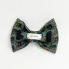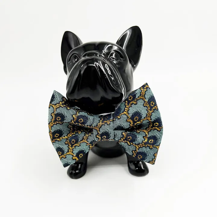 特別な日を祝うちょっと個性的な蝶ネクタイ 大切なパートナーの特別な日の写真撮影やお祝いの場面を、より一層華やかにします。 厳選した輸入生地を使用し国内生産にて作りました。 裏面にゴムバンドがついていてお手持ちの首輪に通すだけで簡単に着用できます。 (幅2cm程度までの首輪) 付属のリボンやゴムに通しても使用できます。 付属リボン:ネイビー 蝶ネクタイの位置は、顎の下や背中側などお好みの位置に調節できます。 また簡単な着用は付属のゴムのご使用をオススメします。 素材の特性上、製品ごとにサイズや色味に多少誤差がございます。 製品の特徴として、あらかじめご了承ください。