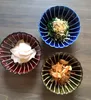 ぎやまん陶はガラスのような透明感ある質感と漆器を思わせる深みのある風合い、そして菊の花をモチーフにした優美なデザインが共存した器です。とろりとした釉薬のかかり具合はまさにガラス細工のような光沢があり華やかな雰囲気をまとっています。見た目の繊細さとは裏腹に、実用性はかなりタフ。硬質で丈夫な磁器の器ですので、温める程度の電子レンジや食洗機も使えます。