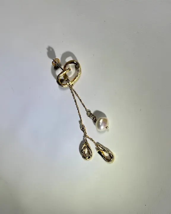 チェーンの長さ調整が出来るピアス、シーンに合わせてアレンジ出来ます✨ 雫型の二つのゴールドとパールが絶妙なバランスで均衡を保ち、耳元を優雅に彩ります。 長さによって印象を変えられるので、普段使いから特別なシーンまで、幅広く活躍します。