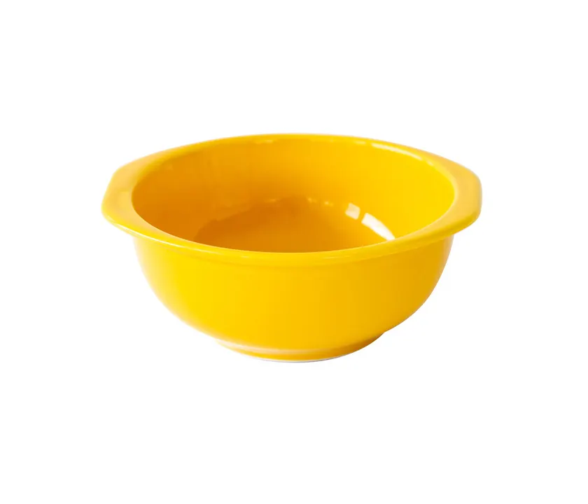 “Chalo Chalo(チャロチャロ)”とはヒンディー語で「Let's Go!」の意味。 カレースパイスなどをイメージした配色が食欲をそそる器シリーズです。 ターバンを巻いたカレーおじさんが、奥深いカレーの世界へお連れします。 様々な場面で重宝するボウルは、是非持っておきたい器のひとつ。 両側に飛び出た耳が、アクセントの意味も込めた持ち手になっています。 片手にフィットするコロンとした形状で、ある程度深さもあるため、葉野菜たっぷりのサラダ用ボウルとしてはもちろん、スープもいけます。更にグラノーラヨーグルトやアサイーボウルとしてもいい感じです。 意外に和食との相性もよく、煮物や和え物にも合います。 広口のエッジ部分は釉薬がのりにくいので、濃色ながら自然な濃淡ができ、味わい深い表情に。 同シリーズで濃色ファブリックがございますので、濃×濃の組み合わせを楽しんで! シンプルなので、飲食店などの業務用にもおすすめしております。 ※カレーおじさんのシールが食器に付いています。シールを剥がせば単色の器としてお使いになれます。