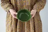 “Chalo Chalo(チャロチャロ)”とはヒンディー語で「Let's Go!」の意味。 カレースパイスなどをイメージした配色が食欲をそそる器シリーズです。 ターバンを巻いたカレーおじさんが、奥深いカレーの世界へお連れします。 様々な場面で重宝するボウルは、是非持っておきたい器のひとつ。 両側に飛び出た耳が、アクセントの意味も込めた持ち手になっています。 片手にフィットするコロンとした形状で、ある程度深さもあるため、葉野菜たっぷりのサラダ用ボウルとしてはもちろん、スープもいけます。更にグラノーラヨーグルトやアサイーボウルとしてもいい感じです。 意外に和食との相性もよく、煮物や和え物にも合います。 広口のエッジ部分は釉薬がのりにくいので、濃色ながら自然な濃淡ができ、味わい深い表情に。 同シリーズで濃色ファブリックがございますので、濃×濃の組み合わせを楽しんで! シンプルなので、飲食店などの業務用にもおすすめしております。 ※カレーおじさんのシールが食器に付いています。シールを剥がせば単色の器としてお使いになれます。