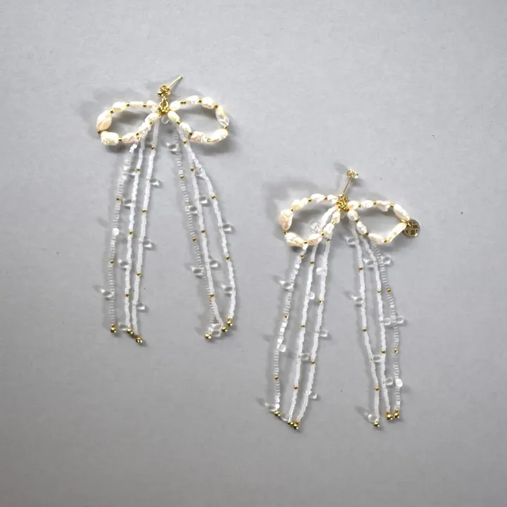 【一合】 昔から日本では 何かあるたびに米や塩を 食べる目的以外のことにも使用してきました 米は五穀の一とされ コムギとともに世界で最も重要な食糧穀物です 一合とは尺貫法における面積・容積の単位で 一升の十分の一を指します 一合のお米があれば 土地神様へのご挨拶もできますし 一日の食事を賄うことも可能です --- ボリュームのある耳飾りは それだけで美しい存在感を放ちます 敢えて選んだ不揃いな淡水真珠が顔まわりを穏やかに彩ってくれます material K14GF ゴールドフィルド(ピアス金具)、SILVER925 金メッキ(イヤリング金具)、淡水真珠、ガラスビーズ、真鍮、テグス *ゴールドビーズは本金メッキ加工を施したものを使用しております *淡水真珠は養殖された淡水貝から取れる無核真珠です。天然素材のため、色・形大きさにばらつきがあり、表面にシワや若干の傷があるものが含まれます。着色はしておらず、素材そのものの天然色です。 size 約45x115㎜ weight 約8.0-9.0g *取付金具によって重さが異なります *CACICOの商品は全て1点1点制作しているため、個体差があり、商品写真と差がある場合がございます。ご了承の上、ご購入ください。 *金属アレルギーの方はご使用をお控えください