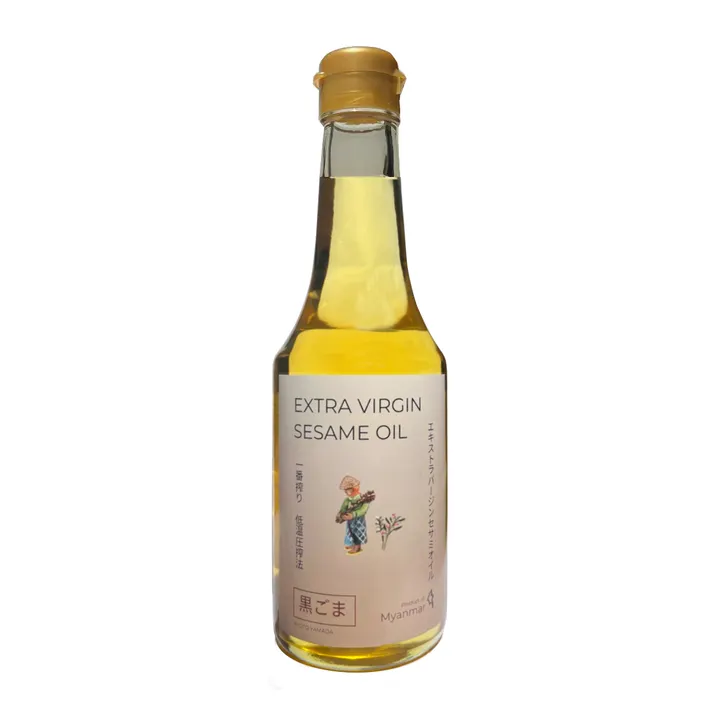 -シャン州産|これ以上困窮する農家を増やさないエキストラバージンごま油 (未焙煎白ごま油/一番搾り/低温圧搾) 275g -未焙煎黒ごま油|ごま本来のやさしさと美容効果を凝縮|希少なエキストラバージン"黒"ごま油(一番搾り/低温圧搾)275g ご希望のサンプルを上記よりお選びください。 【商品詳細】 ●シャン州産|これ以上困窮する農家を増やさないEXTRA VIRGIN SESAME OIL ミャンマー東部シャン州で収穫できる通常のごま粒よりちいさいが 通常の約2倍のセサミンが含まれているのが特徴です。 特別なごまがシャン州では収穫できますが、同時に軍と少数民族との戦闘が激化している州でもあり、 ケシの栽培面積が20%増えていると指摘されています。 これ以上困窮する農家が増えないことを想い、そしてみなさまに想いを届けたく、シャン州の特別なごま粒にこだわりました。 ●黒ごま未焙煎|EXTRA VIRGIN SESAME OIL 黒ごま製品には、いりごま、すりごま、ゴマ菓子など様々ありますが、黒ごま油は中々見かけません。 生産国が限られている黒ごまは市場価値があがり値段もあがるのでわざわざ油にする会社が少ないです。 日本で販売されている黒ごま製品の約8割が、実はミャンマー産黒ごまが使用されています。 私たちはミャンマー産のごまの可能性を広げるべく、黒ごまを未焙煎で1度のみ搾りました。 通常エキストラバージン(白ごま)と比べて、黒ごまエキストラバージンにより爽やかさがあります。 マッサージや化粧品素材のキャリアオイルとしてご利用もいただいています。 【エキストラバージンごま油とは】 "未焙煎"の白ごまを低圧力で搾ったピュアなごま油です。 一般的な抽出法は5倍以上の圧力がかかり、摩擦熱が発生する分焦げがでて色が濃くなります。 低圧力は非常に手間がかかる製法ではありますが、圧力がとても低いため摩擦熱がほとんどなく、 ごま本来の風味と栄養素をより多く残すことができます。 味はナッツのような甘みがあり、サラダや卵かけごはん、パスタにかける、バゲットにつけるなどに人気です。 料理全般にも使えますが、加熱せずに「生のまま」をお召し上がり頂くのがおすすめです。 ローフードにはかかせないオイルです。 ※太白ごま油との違い※ 未焙煎の白ごまを搾っているのは同じです。が、 太白ごま油は搾ったあとに⇒漂白(脱色・脱臭)しているので色も匂いもなく、ごま旨みもほとんど感じません。日本特有のごま油。 EXTRA VIRGIN SESAME OILは搾ったままの100%ピュアオイル。白ごまを搾った本来の色、匂いも味も栄養素もしっかり残しています。 普段サラダ油やオリーブオイルを使われている方に特に好まれているオイルです。 個人差はもちろんありますが、サラダ油とオリーブオイルよりもさらっとしていることでお客様より好評いただいています。