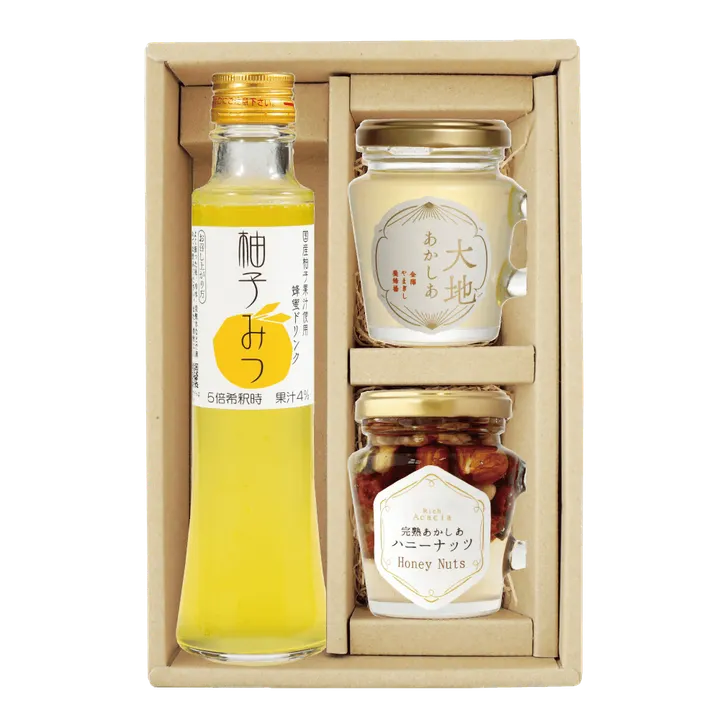 はちみつ&ドリンク ギフト箱 (130gはちみつ商品×2本+はちみつドリンク1本用)