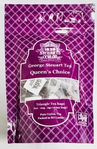 ★注)新商品のため、最短で3月3日以降の出荷となる予定です 茶葉が動き抽出しやすいトライアングルバッグです。 1パックのなかにティーバッグが10袋入っています。 カジュアルなギフトにもおすすめの商品です。 【QUEEN'S CHOICE(クイーンズチョイス) フレーバー紹介】 George Steuart設立175周年を記念して英国女王に献上した特別な紅茶。 甘酸っぱい香りと爽やかな風味が特徴です。紅茶、緑茶、矢車菊(ヤグルマギク)、 バラの花びらを使ったユニークなブレンドで、 程よい酸味を含みます。 女性だけではなく男性人気も高いフレーバーです。 ペアリング:オイル系パスタ、ベリー系のケーキ、デニッシュ、チョコレート アイスティーにもおすすめ 【内容量】40g(2g×10袋×2) 【原材料】紅茶・緑茶・ベニバナ・ヤグルマギク・香料 【お届けの状態】常温 【アレルゲン】なし 【賞味期限】製造から3ヵ月以上 【原産地】スリランカ (スリランカ産茶葉100%使用) <George Steuart Tea(ジョージスチュアートティ)とは> George Steuart は、1835年に英国人船長James Steuartによって設立された、スリランカ(前セイロン)で最も歴史の古い紅茶メーカーです。内戦前はセイロンという国名だったスリランカ。スリランカでピンと来ない人も、「セイロンティー」は聞いたことがあるのではないでしょうか。英国からの独立後も紅茶文化は残り、国策として茶園国有化まで計画され、同社もその計画に深く関わっています。「インド洋の真珠」と謳われるほど美しく肥沃な土壌は、茶園を作るのに最適だったのです。180年以上を経た現在でも、手摘みの伝統的な技法で作られる同社の紅茶ですが、現代の嗜好に合わせて少しずつ新しいフレーバーを開発。革新的な老舗として世界中で愛されています。日本では、2014年、当時の在日スリランカ大使の推薦もあって正規販売が始まった、まだ新しいブランドです。 <George Steuart Teaが選ばれる理由> George Steuart Teaは、英国女王陛下に献上し感謝状をいただいたこともある、格式高い紅茶です。スリランカ産の茶葉を100%使用し、伝統的技法で一貫製法されています。一方で、現代人のスタイルに合うよう、リーフ以外にもトライアングルバッグ、気軽に試せるティーバッグなど、多数ご用意しています。フレーバーも、定番からオリジナルまで20種以上と多様。必ず好みのフレーバーが見つかるラインナップです。また、香りも風味もフレッシュなので、ストレートはもちろん、アイスティーやミルクティーでも美味しくいただけます。 日本での販売が始まってわずか2年で、ANAのビジネス・ファーストクラスに搭載、さらに翌年にはANAの全てのラウンジにも採用され、着実にファンを増やしています。