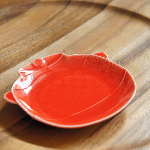サンプル 細工小皿 茶釜3寸皿:赤13131