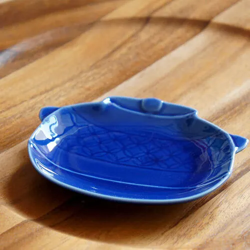サンプル 細工小皿 茶釜3寸皿:青13133