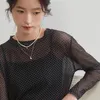 KNGT615・星座とドット2柄プリントパワーネット長袖シアートップ FREE/BLACK DOT
