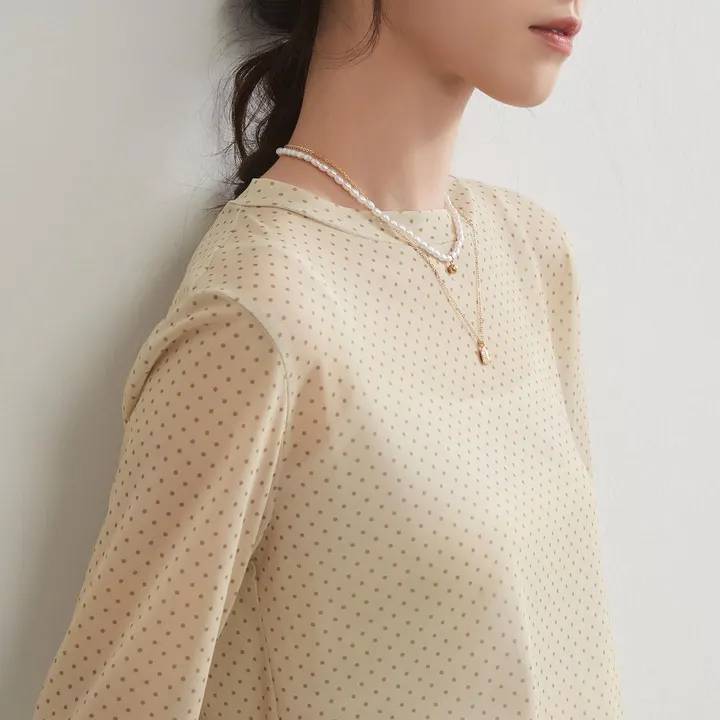 KNGT615・星座とドット2柄プリントパワーネット長袖シアートップ FREE /CREAM DOT