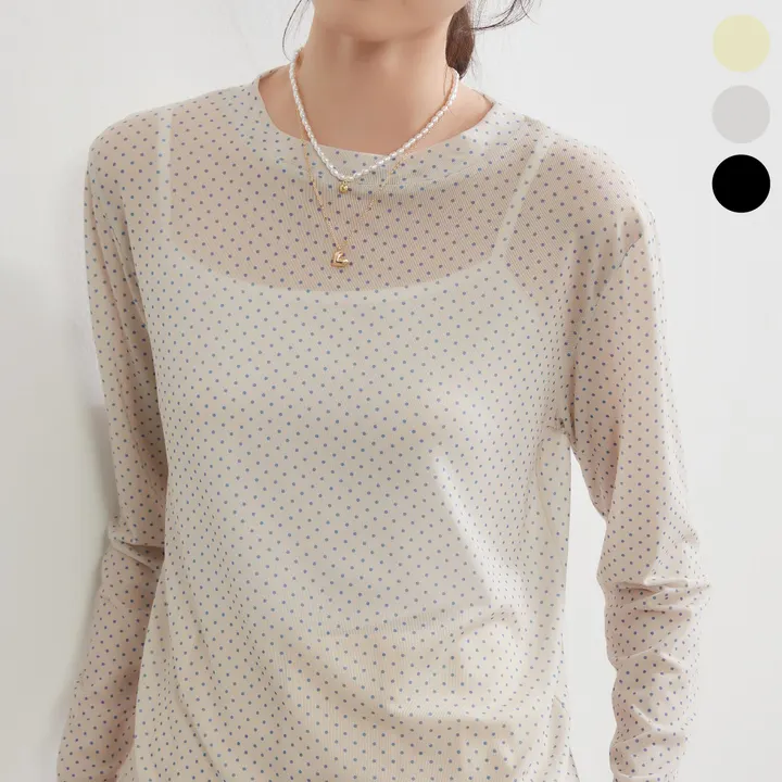 KNGT615・星座とドット2柄プリントパワーネット長袖シアートップ FREE/GRAY DOT