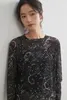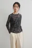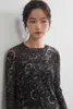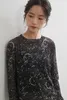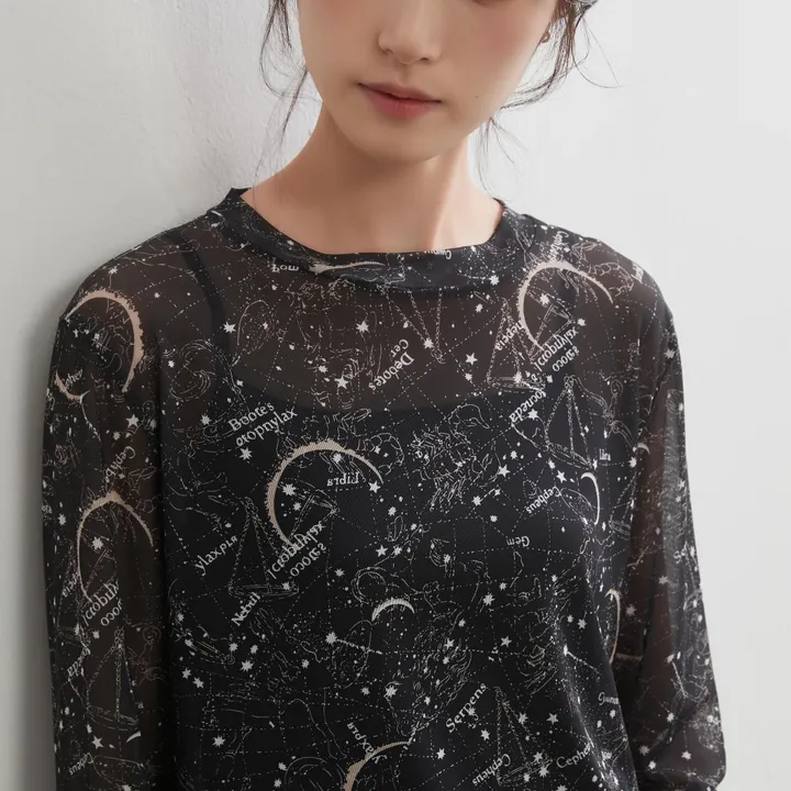 KNGT615・星座とドット2柄プリントパワーネット長袖シアートップ FREE/BLACK星座