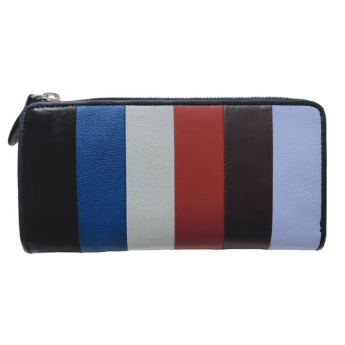 パーソナルカラーをイメージした配色のストライプが特徴の長財布!牛革なのに薄くて軽量!中心にZIPつき小銭入れスペース、内側の両面に仕切られたフラットなポケットは使いやすいと好評!カードポケットは8スペース、牛革でパイピングされて壊れにくく1スペースに何枚ものカードを収納できます。カードスペース裏のポケットもしっかり収納できます。薄型でもワイドに広がり出し入れしやすい長財布です。商品写真と実物の色味に若干の差異がある場合がありますので、予めご了承ください。ご購入の際は、ご確認いただきますようお願いいたします。 素材 表面:牛革100% 裏面:牛革100% 裏地:ナイロン100%