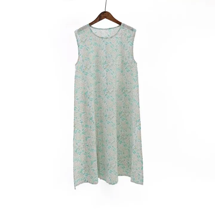 ブロックプリント ポーチュラカのルームウェア ワンピース(2色) GN(グリーン)