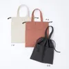 16インチのPCが入る撥水トート。雨が降ったときに軽く絞れるようTOPにはコードを通しています。ハンドルは肩掛けするので少し太めにしています。男性でも使えるようマチはなくしてスッキリとさせた分、大きくて深いポケットにしています。