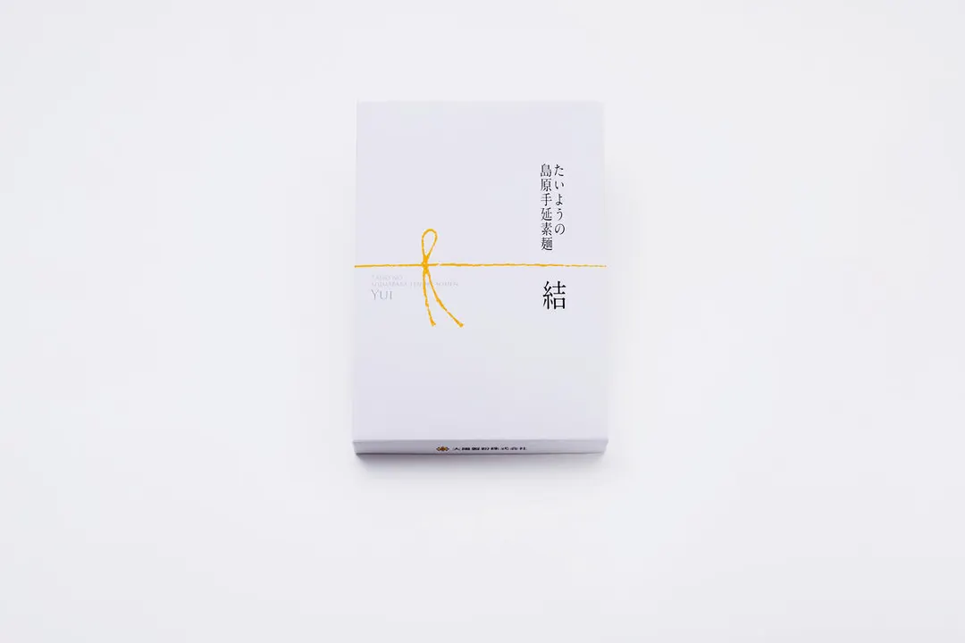 "「たいようの島原手延べそうめん 結」は、厳選小麦を自社で製粉した、こだわりの「手延そうめん用小麦粉」を使用しており、小麦の豊かな香りと食感を感じられる逸品となっております。 大切な方への贈り物へお役立てください。 長崎県の南東部に位置する島原半島で生産される島原手延そうめんは全国の手延そうめんの約30%を製造しています。 機械製麺とは製造工程が大きく異なり、熟練した職人の手で12の工程を時間をかけて丁寧に熟成させながら作ることで、しっかりとしたコシと歯ごたえが生まれます。 『しっかりとした歯ごたえ』と『つるっとしたのど越し』。 茹で上げた後も素麺が伸びにくく、時間がたっても「めんつゆ」や「水」をかければ、麺がほぐれて、美味しく頂けます。"