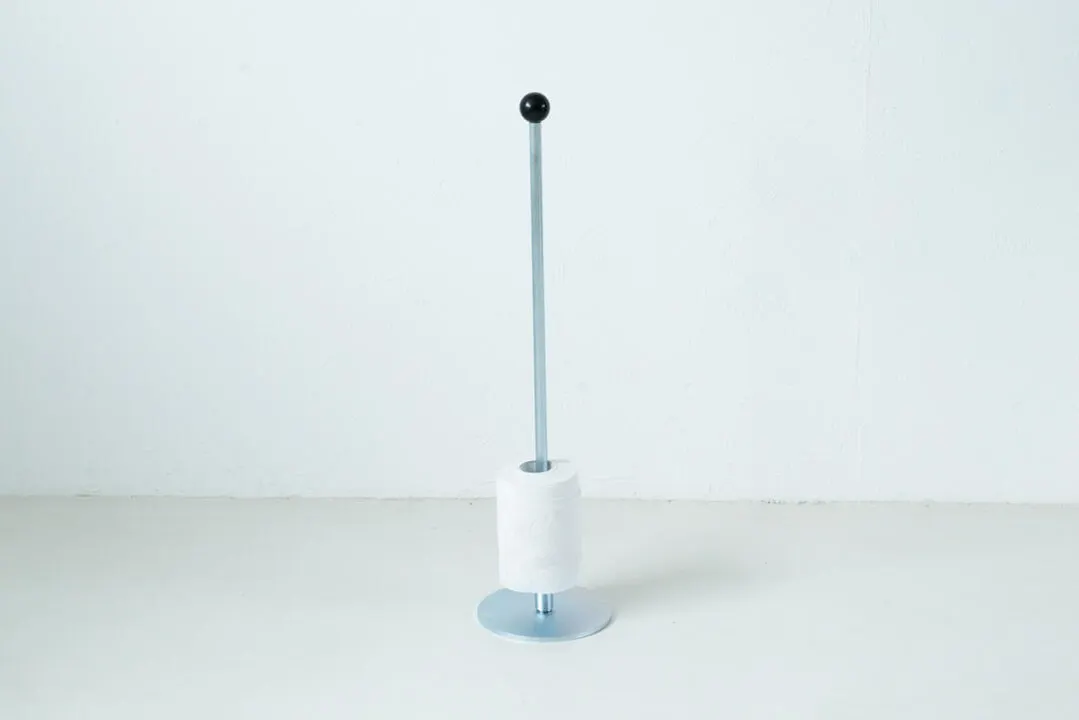 ペーパーストックホルダー。 底上げをしているので、直置きをしなくて良いところがおすすめポイント。トイレットペーパーや、キッチン周りではキッチンペーパーなどを収納しておけます。 握り玉と呼ばれる玉の部分は外すことも可能なので、挿す際は芯に合わせてご使用ください。
