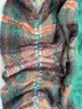 フランスの織物をパッチワークして作られた、ストールにもなるケープ風羽織です。 シャーリング加工により立体感があり、ボタンが2つついていて自由にスタイリングできます。 モヘヤを使用した三者混の生地は軽量ながら空気を含んで暖かいです。