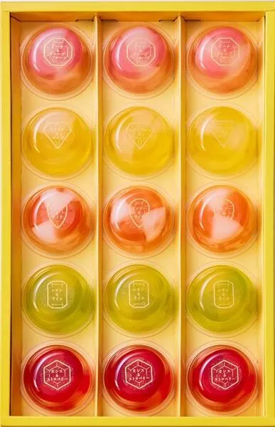 1つのゼリーに2つの果実の味わい。 キラキラ輝く、見た目もかわいいプチデザート。 【内容】 ピーチ&グレープフルーツ味  52g×3個 アップル&パイン味      52g×3個 マンゴー&ライチ味      52g×3個 レモン&ライム味       52g×3個 カシス&ストロベリー味    52g×3個 【必ずご確認下さい】 ※メーカー直送のみの対応となります。(送料込み・1ケースから直送可能) ※<中島大祥堂・直送商品>のみでご注文をお願いいたします。<中島大祥堂・直送商品>以外の商品との混載発注は出来ません。 ※北海道・沖縄離島等には発送が出来ません。ご了承ください。 ※通常、ご注文を頂いてから1週間程度でのお届けですが、大型連休・年末年始または天候の影響により1週間以上かかる可能性がございます。その際は、改めてご連絡いたします。 ※包装紙同梱