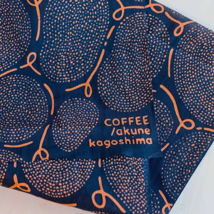 阿久根というまちをあらわすコーヒー豆のデザインの手ぬぐい。 印染という大漁旗を作る伝統技法のなかでも、 型置き染めという技法で染められた手ぬぐいです。 色落ちに強く、吸水性があるため普段使いにはもちろん、 アウトドアや温泉にも活躍するアイテムです。