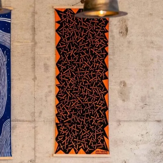阿久根というまちをあらわすうにのデザインの手ぬぐい。 印染という大漁旗を作る伝統技法のなかでも、 型置き染めという技法で染められた手ぬぐいです。 色落ちに強く、吸水性があるため普段使いにはもちろん、 アウトドアや温泉にも活躍するアイテムです。