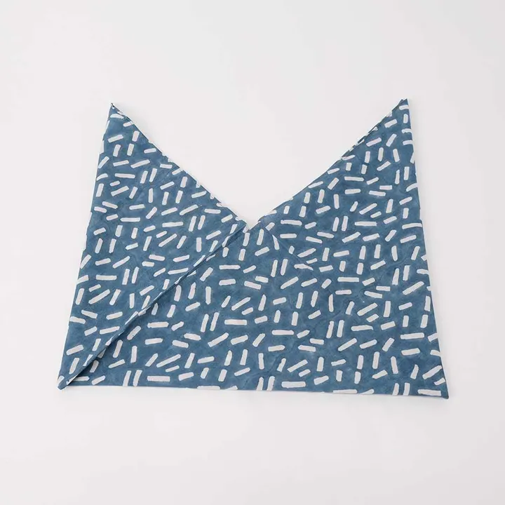 コンビニでエコバッグを忘れてしまった時にポケットにしまったハンカチがバッグになれば。 そんなアイデアから生まれたハンカチバッグです。 ハンカチとして使えるだけでなく、 上部の三角部分を結べば小さなエコバッグやお弁当包みとしても活躍してくれます。 畳んだ時に通常ハンカチと同じサイズになるようデザインしてあるのもポイント。 ブロックプリントならではの風合いはそのままに、ユニセックスで使いやすい色展開にしています。 小ぶりなカゴバッグのライニングとしても◎ **BLOCKPRINT** ブロックプリントとは 木彫りの版でハンコを押すように1柄ずつ1色ずつプリントされたものです。 まずはアウトラインとなる柄のスタンプを押していき、その後色をのせていきます。 使われている色の数だけ、作業は複雑になっていきます。 全て手作業の為、染めムラやスタンプの境目などが少し出ていますが それがブロックプリントの良さでもあり、風合いとなっております。 機械化が進むこの時代にこの風合いをぜひお楽しみ下さい。 【ファブリック】【バッグ】【ブロックプリント】【トラベル/旅行】【動画】