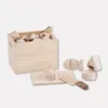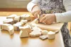 さくっと切れる感覚が楽しい!切って、お料理してまたくっつけよう。 13 種類の野菜に、カトラリーに包丁が入った、あっという間に料理名人になれるセットです。 箱のふたを外せばまな板として使うことができます。食材に包丁を入れると、ザクッといい音がきこえてきます。 切った食材は面ファスナーで何度でもくっつきます。 セット内容:木箱1個 まな板1個 食材13種(さかな、おにぎり、食パン、トマト、なす、大根、たまご、人参、バナナ、りんご、マッシュルーム、ぶどう、とうもろこし 各1個) カトラリー3種(ナイフ スプーン フォーク 各1個)包丁 1個 対象年齢:3歳・4際~ ※CEマーク取得商品 ※ST規格に準拠