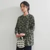 商品の特徴 シックな深緑の総柄プリントが目を引く、ギャザー切替デザインのバンドカラーブラウス。首元をすっきり見せるバンドカラーと、ふんわりとした袖のボリューム感が上品な印象を演出します。裾にかけてやや広がるシルエットで、体型を自然にカバー。 生地の特徴 綿100%のさらりとした平織り生地を使用。肌あたりが柔らかく、通気性にも優れており、季節の変わり目にも快適に着用いただけます。 コーディネート提案 テーパードパンツやストレートデニムと合わせてすっきりと。スカートにインしてフェミニンにまとめるのもおすすめ。落ち着いたカラーなので、オフィスからカジュアルまで幅広く活躍します。 単位(cm)モデル身長165cm サイズ M / L  M:着丈 74 バスト 100 肩幅 40 袖丈 54 L:着丈 75 バスト 106 肩幅 41 袖丈 55 素材:綿 100% 中国製 透け感:なし 生地の厚さ:普通 光沢感:なし 裏地:なし 家庭洗濯:可能 【注意点】 ※撮影商品はサンプルの為、実際の仕様と異なる場合がございます。 ※画像の商品は光の照射や角度、お使いのモニター環境により、実物と色味が異なる場合がございます。スタジオ物撮りの画像が実物の色味に一番近くなっております。 ※予約商品の場合、お届け予定はあくまでも目安となります。 生産の都合上、お届け時期がずれる場合がございますので、あらかじめご了承ください。 ※表記サイズは商品の実寸です。 ※布製品の特性上、サイズ表の実寸法は多少の誤差が生じる場合がございますので、予めご了承ください。